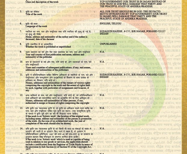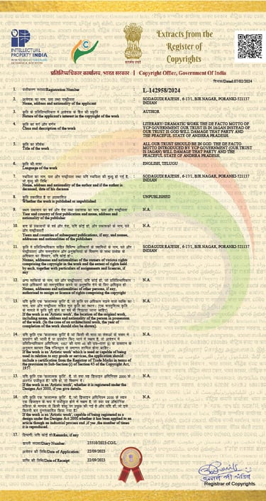 దేవుని ప్రేరేపణతో 2023 సెప్టెంబర్ నెలలో నేను ఈ పుస్తకము వ్రాశాను. కేంద్ర ప్రభుత్వం ద్వారా పనిచేసే న్యూఢిల్లీలోని కాపీరైట్ ఆఫీసుకు ఈ పుస్తకమును పంపించాను. 5 నెలలకు కాపీరైట్ ఇచ్చారు.